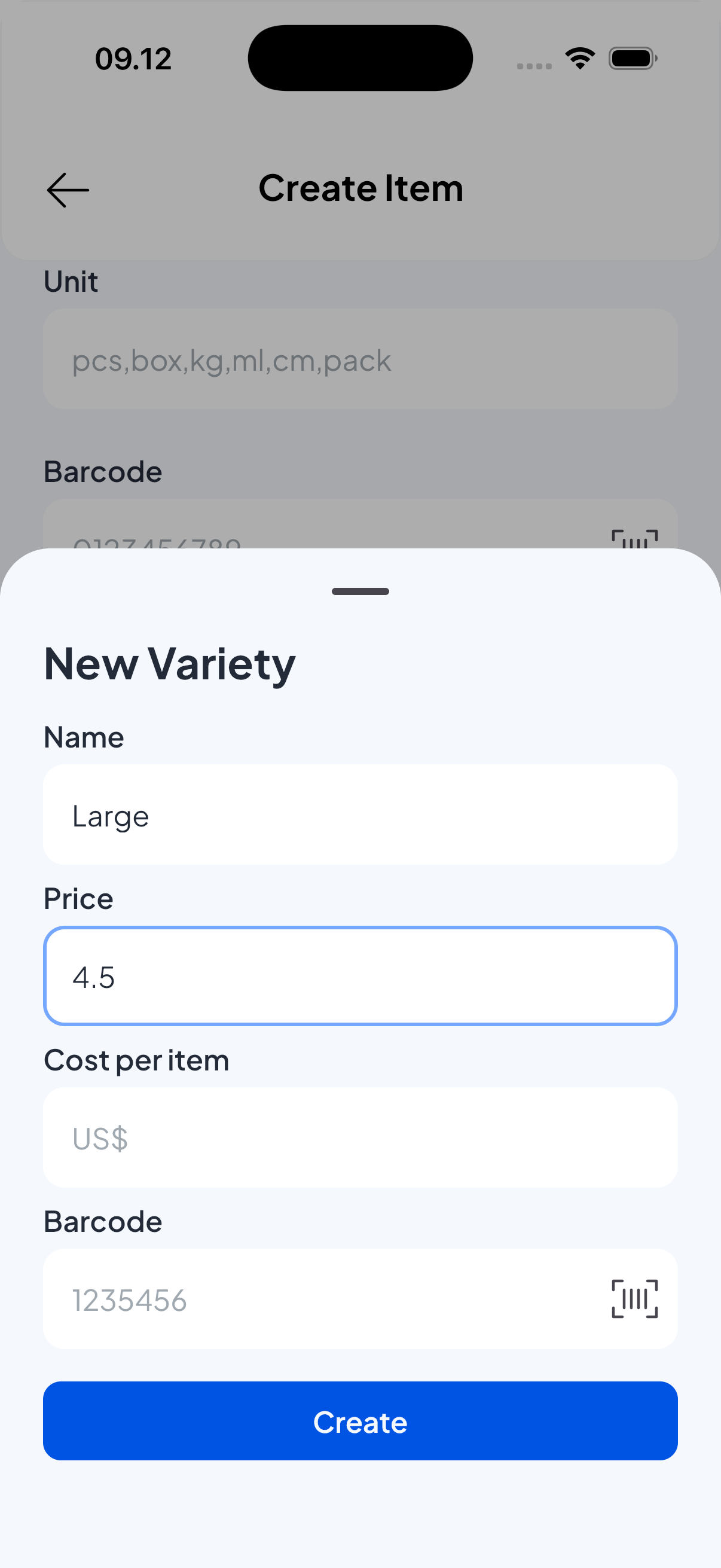 • Barcode / SKU — optional but recommended for fast lookup and scanning.